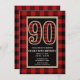 Rustic Red Black Buffalo Plaid 90th 90 Birthday Invitations.