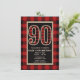 Rustic Red Black Buffalo Plaid 90th 90 Birthday Invitation