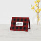 A rustic red and black buffalo plaid card designed for easy personalization. Add your own rectangular logo to create a custom business insert, promotional piece, or professional correspondence card. The bold lumberjack pattern adds a warm, outdoorsy touch while keeping the layout simple and versatile. Ideal for small businesses, events, or anyone who loves classic plaid style.