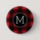 Rustic Red & Black Buffalo Plaid Pattern Monogram 6 Cm Round Badge