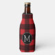 Rustic Red Black Buffalo Plaid Pattern Monogram Bottle Cooler