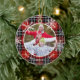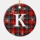 Rustic Red Black Plaid Snowflake Monogram Photo Ceramic Ornament