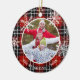Create a commemorative keepsake Christmas holiday photo ornament featuring a red and black tartan plaid pattern dusted with snow and sprinkled with falling snowflakes, your photo and personalized with your custom text on the front and your monogram on the back. Contact the designer via Zazzle Chat or makeitaboutyoustore@gmail.com if you'd like this design modified or on another product.