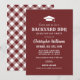 Set the tone for a classic cookout with this red brown graduation party invitation featuring a graduation cap icon and bold “Backyard BBQ” rustic typography. Ideal for a summer open house, backyard celebration, or casual BBQ gathering. Personalise the name, date, time, address, and RSVP. Back shows a coordinating gingham pattern.