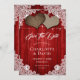 Complement your romantic rustic red wedding party with these beautiful burlap and lace wedding save the date cards featuring two burlap hearts on a red barn wood background decorated with string lights and white floral lace. Matching items available.