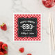 Vibrant couples shower napkins with a bold "Couples Shower BBQ" chalkboard-style design set against a cheerful red gingham check background. The couple's names in playful script add a personal touch to this classic cookout theme. Ideal for a casual wedding couples shower barbecue. Personalise with your details.