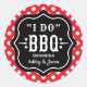 Fun and festive wedding favour stickers featuring the bold "I Do BBQ" featured text inside a decorative black label frame surrounded by a classic red and white gingham border. Perfect as favour bag seals or envelope stickers for a casual backyard barbecue wedding celebration. Customise with the couple's names to add a personal touch.