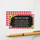 Rustic books for baby enclosure card for a baby-q shower with yellow sunflowers, printed wood grain, and a classic red gingham pattern.