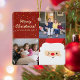 Rustic Red & Gold Christmas Santa and Family Photo Ceramic Ornament