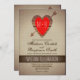 Rustic Red and Brown Heart Arrow Country Wedding Invitations. This unique design has a wood design heart accented in red with an arrow going through, with the bride and groom's initials inside the heart. The rest of the invitation has a vintage looking background of brown linen burlap printed design. These wedding announcements are perfect for a country wedding, especially if the bride is having brown and turquoise wedding colours.