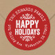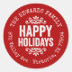 Affordable custom printed round return address stickers personalised with your family name and return address. This rustic modern holiday design features distressed HAPPY HOLIDAYS lettering on a red background. Use the design tools to choose any background colour and edit text fonts and colours to further customise your own unique holiday return address labels.