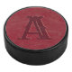 Rustic Red Leather Texture Monogram Initial Hockey Puck
