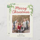 Rustic Red Merry Christmas Script Leaves 10 Photo Holiday Card