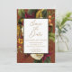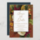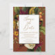 Ethereal floral bouquets with shades of dark red, rusty orange, yellow to harvest gold and lush greenery give this dark botanical wedding "Save the Date" design a look of deep, rich modern rustic elegance that is sure to impress your recipients. Available in a variety of colour combinations. Simply add your names, date, location and website or other details. Shown here on a rusty orange / terracotta background with a dark teal back background. Composite design by Holiday Hearts Designs (rights reserved).
