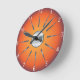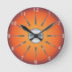 A classy stylish addition to your wall that's also functional! this wall clock has a red orange background that suggests fall leaf colors with illustrated metallic gold and silver accents. A great affordable holiday gift for home or office.