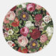 Rustic Red Pink Floral Greenery Black Classic Round Sticker