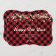 Red buffalo plaid New Year card featuring glowing lights and stars on a red buffalo plaid background.
