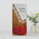 Announce the order of your casual yet classy December Christmas time nuptials with the charming Rustic Red Poinsettia Country Winter Wedding Program. This informal and elegant custom rural ranch theme marriage timeline program features a quaint floral photograph of a red poinsettia flower blossom, red burlap ribbon and a vintage white lace trimmed linen handkerchief with a brown barn wood background. Perfect inspo for a casual farm style barn party celebration event.