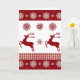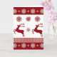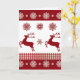 This classy customisable holiday design features two reindeer silhouettes in red colour, red gingham detail that runs width of card and red snowflakes on a white background.