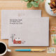 Vintage style, rustic envelope has an antique home in a snow covered meadow with birds eating red berries. The design continues on the back with a cold wintery barren tree with a fox next to it, foraging for food. This unique and beautiful envelope matches a few Christmas cards in our shop too!