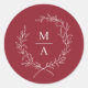 Rustic Red Simple Elegant Laurel Wreath Monogram Classic Round Sticker