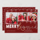 Rustic Red String Lights Merry & Married Christmas Card . The design has space for 3 of your favourite photos with "Merry & married" written on the card in a pretty font and the inside of the card has a personalised message.