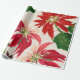 Rustic Red Watercolor Poinsettia Floral Greenery Wrapping Paper
