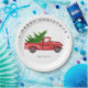 Rustic Red Watercolor Truck With Christmas Tree Paper Plate
