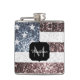 Rustic Red White Blue Sparkles USA flag Monogram Hip Flask