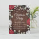Rustic Red White Floral Lights Christmas Party Invitation