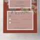 ALSO AVAILABLE IN STYLES WITHOUT DINNER OPTIONS OR WITH A QR CODE. Celebrate love in the enchanting embrace of winter with our exquisite wedding invitation. Embodying the serene beauty of the season, this invitation features a captivating soft red hue that exudes elegance and warmth. The centerpiece of this ethereal invitation is a transparent white text area, lovingly framed by intricately intertwined pine, holly, and red berries, reminiscent of a magical winter wonderland. Delicate winter greenery encircles the frame, accentuating the invitation's enchanting appeal. The couple's initials radiate the love that binds them together, symbolising their union as they embark on a new chapter in life. Created by Simply Farmhouse Press.