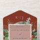 ALSO AVAILABLE IN STYLES WITHOUT DINNER OPTIONS OR WITH A QR CODE. Celebrate love in the enchanting embrace of winter with our exquisite wedding invitation. Embodying the serene beauty of the season, this invitation features a captivating soft rustic red hue that exudes elegance and warmth. The centerpiece of this ethereal invitation is a transparent white text area, lovingly framed by intricately intertwined pine, holly, and red berries, reminiscent of a magical winter wonderland. Delicate winter greenery encircles the frame, accentuating the invitation's enchanting appeal. The couple's initials radiate the love that binds them together, symbolising their union as they embark on a new chapter in life. Created by Simply Farmhouse Press.