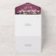 All in one wedding invitation featuring pretty string lights, hand-drawn floral garland and chic typography on a rustic burgundy red wood panels background. The invitation includes a perforated RSVP card that can be individually addressed or left blank for you to handwrite your guest's address details. Designed by Thisisnotme©