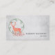 Business cards with a digital watercolor design. A pastel orange reindeer silhouette inside a wreath of herbal leaves. Mushrooms and forest ferns at his feet.