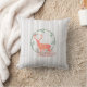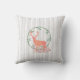 A pillow with a digital watercolor design. A pastel orange reindeer silhouette inside a wreath of herbal leaves. Mushrooms and forest ferns at his feet.