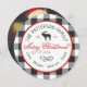 Affordable custom printed holiday photo cards with simple templates for customisation. This fun design features a circle die-cut shape with buffalo check plaid background, a reindeer graphic and modern rustic typography in red, white and charcoal grey colours. The text reads "Merry Christmas" in a trendy script font. Personalise it with your family names, the year or other custom text. Reverse side has space for photos or additional text. Use the design tools to edit the text, add more photos and create a unique one of a kind round Christmas photo card.