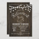 Rustic Retirement Invitation with dark brown wood pattern and fairy string lights. Perfect for a rustic style party.