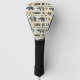 Bold tribal rhino pattern golf head cover featuring distressed black rhinoceros silhouettes paired with geometric mudcloth-style motifs in warm tan and charcoal on a textured beige background. A rugged, earthy design ideal for safari enthusiasts, boho decor lovers, and wildlife-inspired style fans.