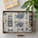 Bold tribal rhino pattern tissue paper featuring distressed black rhinoceros silhouettes paired with geometric mudcloth-style motifs in warm tan and charcoal on a textured beige background. A rugged, earthy design ideal for safari enthusiasts, boho decor lovers, and wildlife-inspired style fans.
