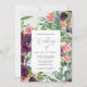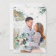 This beautiful wedding photo invitation features vibrant floral botanical elements set against a pretty pastel mint green background. This chic invitation includes touches of pretty calligraphy.
