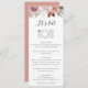 Compliment your classic wedding event with this rustic rose gold floral calligraphy wedding menu. The design features pampas grass, burgundy, pink and rose gold flowers in elegant bouquets.