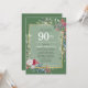 Beautiful and elegant winter botanical design features red and white roses nestled in deep green holly and berries. A wide gold frame pulls it all together. Rustic, boho charm with an elegant vibe. 90th is written in a large white colour. The birthday clebrant's name is in the same white. The back of the invitation is deep green for a festive holiday or winter touch. The invitation is easy to customise. It is part of a collection that contains the DIY templates that allow you to create a stunning invitation set and party decorations and supplies.