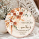 Make a lasting impression with this rustic round wood cut grain wedding invitation, designed to resemble a tree trunk slice with natural wood rings. Featuring boho floral watercolor accents in warm terracotta and earthy tones, this unique and creative wedding invite is perfect for barn weddings, forest celebrations, vintage rustic themes, and outdoor summer ceremonies. The round design adds a truly engaging touch, making it a memorable and timeless wedding stationery choice. Whether you're planning a boho-chic, romantic, or woodland-inspired wedding, this tree bark wedding invitation is the perfect way to set the tone for your special day.