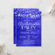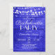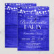 Make a bold statement with this striking rustic bachelorette party invitation. A vibrant royal blue wood plank background glows beneath delicate white string lights, creating a dramatic yet charming atmosphere perfect for a lively, memorable celebration.