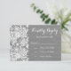 Rustic RSVP card with grey burlap and lace for wedding. Decorated with a floral white lace over a grey burlap background. You can customise all of the text and fonts including the lines for an answer.
