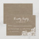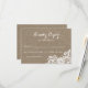 Rustic RSVP card with burlap and lace for wedding. Decorated with a floral white lace over a brown burlap background. You can customise all of the text and fonts including the lines for an answer.