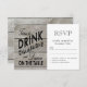 This fun and flirty RSVP is on a barn board background giving it a rustic feel. Since the tone of the background resembles drift wood, this invitation is equally appropriate for a beach or destination wedding. Scroll down to see the complete collection.