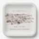Rustic Rust Orange Winery Mountain Sketch Wedding Paper Plate