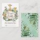 Rustic jungle themed diaper raffle card featuring adorable watercolor illustration of safari animals and lush botanical greenery.