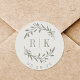 Rustic Sage Botanical Wreath Wedding Monogram Classic Round Sticker